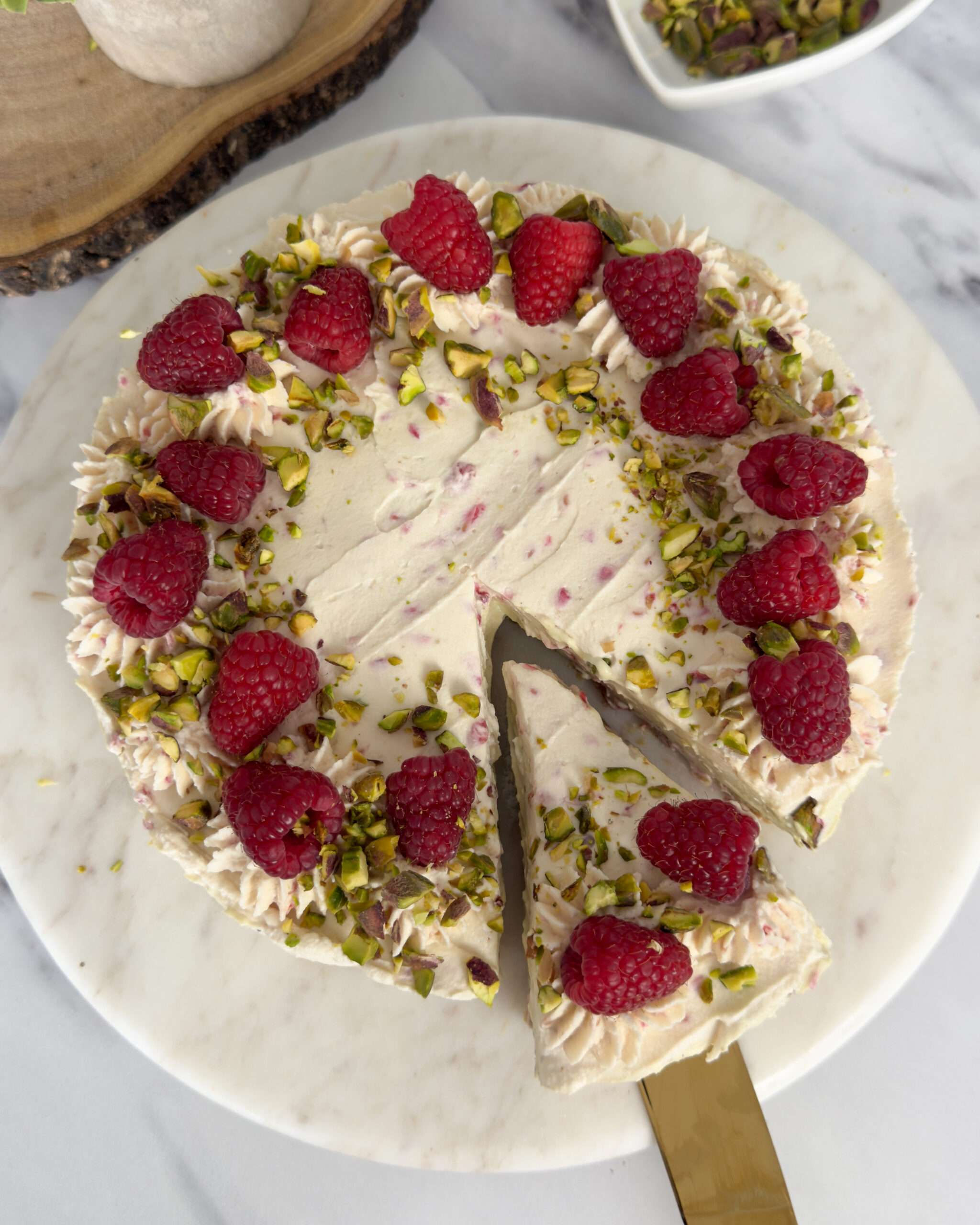 The Ultimate No-Bake Pistachio Raspberry Cheesecake