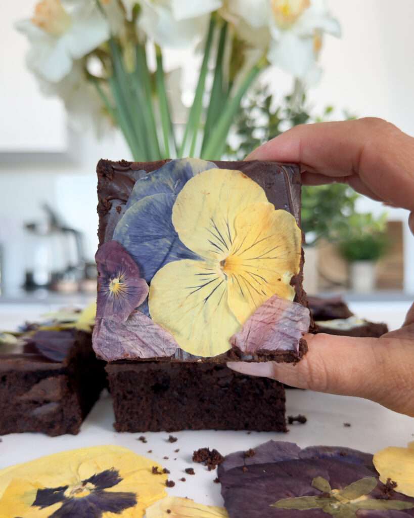A good brownie doesn’t need much explaining, but the difference between an average one and one you’d go out of your way for usually comes down to small details. The texture needs to be just right – soft in the centre, slightly dense, and stable enough to slice cleanly without turning cakey or dry. This is the kind of brownie you’ll recognise from good bakeries, where the focus is on getting the balance right rather than overcomplicating things. It’s rich without being overly sweet, deeply chocolatey, and thick enough to feel a bit more indulgent than a standard tray bake. The recipe is made in one bowl, which keeps it simple, but the method still gives you that crackly top and fudgy centre that people look for. After testing different ratios and bake times, this version lands in that middle ground where it feels reliable and worth coming back to. Why you’ll love this recipe one bowl method with no unnecessary steps thick brownies in a 9-inch tin – not flat or thin fudgy centre with a crackly top less sweet, more chocolate-forward flavour easy to make but still feels bakery-level Ingredients (9-inch / 23cm square tin) 210g unsalted butter 185g caster sugar 120g light brown sugar 4 medium eggs (room temperature) 1 tsp vanilla extract 85g unsweetened cocoa powder 105g plain flour 3/4 tsp fine sea salt 100g dark chocolate, chopped How to make one bowl brownies Start by lining a 9-inch square tin with baking paper and preheating your oven to 170°C fan (190°C conventional). Melt the butter until just liquid, making sure it isn’t too hot, then whisk in both sugars until the mixture looks glossy and slightly thickened. This step helps create the thin, crackly top once baked. Add the eggs one at a time, whisking well after each addition, followed by the vanilla extract. Continue whisking for about a minute until the mixture looks smooth and slightly lighter, which helps build structure while keeping the texture soft. Sift in the cocoa powder, flour and salt, then fold gently until just combined. Stop mixing as soon as the dry ingredients are incorporated to avoid overworking the batter. Fold through the chopped dark chocolate, which will melt into the brownies as they bake and create pockets of richness throughout. Pour the batter into your prepared tin, smooth the top, and bake for 22 to 28 minutes. The edges should be set while the centre still has a slight softness, which keeps the brownies fudgy rather than dry. Leave them to cool completely in the tin before slicing. For cleaner slices, chill them in the fridge for one to two hours. Optional – chocolate ganache and edible flowers If you want to give them a more finished look, especially for hosting or gifting, a layer of chocolate ganache and a few edible flowers are a non-negotiable. The ganache was made using Choctastique dark chocolate from The Cake Decorating Company, which melts smoothly and sets with a soft, glossy texture. Once the brownies were fully cooled, spread the ganache evenly over the top and finished with pressed edible flowers from Nurtured in Norfolk. To make the ganache, melt 200g of dark chocolate and stir in 100ml of cold cream. Stir until smooth and let it cool slightly before spreading so it sits neatly on top. The texture you’re aiming for These brownies are thick and slightly dense, with a soft centre and a thin crackly top. They hold their shape when sliced but still feel fudgy, with melted chocolate running through each piece. They sit somewhere between a classic homemade brownie and something you’d expect from a small bakery, where the focus is on texture and flavour rather than decoration. How to serve They work well slightly warm with a scoop of vanilla ice cream, or simply on their own with coffee. They also travel easily, which makes them a good option for taking with you on a walk, a picnic or a weekend away. A few small tips avoid overbaking, as the centre should still feel slightly soft when removed from the oven use a good quality cocoa powder for a deeper chocolate flavour allow them to cool fully before slicing for the best texture add a light sprinkle of flaky sea salt before baking if you want a bit of contrast Let me know if you make these 🍫